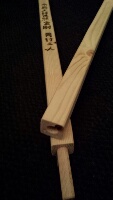 Maar niet alleen de lengte klopte niet, ook de dikte moest aangepast. 5mm in het vierkant erbij zou hem tot een echte Kongo Tsue maken.