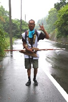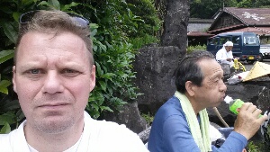 Een paar uur geleden heb ik hem leren kennen, deze krasse knar uit Hiroshima. Op het moment dat ik net de route op kwam liep hij een stuk voor me en haalde hem een kilometer of wat, later in. Een andere oude Henro kon ons niet bijbenen en ik zag hem even later, sneaky op de tijden tabel van de bus kijken. De oude boef.